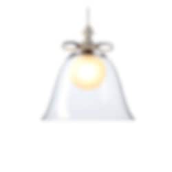 Bell Lamp är inspirerad av en av de äldsta formerna av kommunikation och skapar en inbjudande känsla. Den har en klockformad skärm i munblåst glas. På toppen sitter en dekorativ porslinsrosett i vitglaserat eller guldpläterat utförande, med en matchande takkåpa. Den diskreta genomskinliga sladden gör att lampan smälter in i sin omgivning. Bell sprider ett varmt, riktat ljus nedåt. Den passar perfekt över köksbordet eller som en stämningsfull ljuskälla i sovrummet.