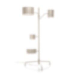 Statistocrat är en stilren och mångsidig golvlampa med sin smäckra aluminiumkropp på två meter kombinerar den konstnärlig form med funktionell belysning. Den högsta skärmen riktar ljuset uppåt, den bredare fungerar som en läslampa, och den lägsta är ett praktiskt sidobord, perfekt för en laptop eller en kopp kaffe. Varje ljuskälla har en individuell dimmer för anpassad ljusstyrka. Tillverkad i pulverlackerad aluminium står lampan stadigt på en stabil fot med rundade fötter. Flera färger och ytbehandlingar finns för att passa olika inredningsstilar. Den är både en ljuskälla och ett konstverk i sig.
