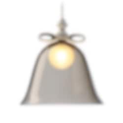 Bell Lamp är inspirerad av en av de äldsta formerna av kommunikation och skapar en inbjudande känsla. Den har en klockformad skärm i munblåst glas. På toppen sitter en dekorativ porslinsrosett i vitglaserat eller guldpläterat utförande, med en matchande takkåpa. Den diskreta genomskinliga sladden gör att lampan smälter in i sin omgivning. Bell sprider ett varmt, riktat ljus nedåt. Den passar perfekt över köksbordet eller som en stämningsfull ljuskälla i sovrummet.