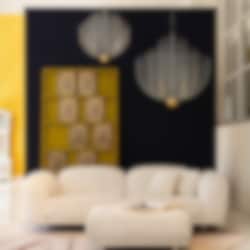 Med sin flerskiktade konstruktion i galvaniserat stål och mässingsdetaljer sprider Meshmatics ett mjukt, varmt ljus som fyller rummet utan att konkurrera med inredningen. Tack vare nätets transparens blir ljuset aldrig skarpt eller bländande – snarare skapas en mild, diffust skimrande atmosfär.