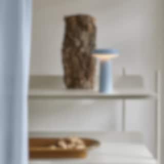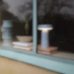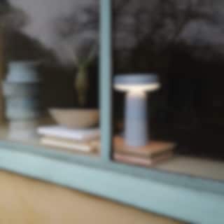 Batteridriven, dimbar och bärbar lampa med 8 timmars batteritid på 100 % intensitet, 16 timmar på 50 % intensitet och 29 timmar på 25 % intensitet. Stomme och lampskärm gjorda i formsprutade ABS-plast, med inbyggd LED-ljuskälla. Diffusor i opal akryl. Laddningsdocka tillverkad i formsprutad ABS-plast med USB-C-kabel.