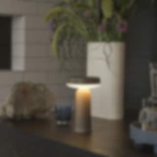Batteridriven, dimbar och bärbar lampa med 8 timmars batteritid på 100 % intensitet, 16 timmar på 50 % intensitet och 29 timmar på 25 % intensitet. Stomme och lampskärm gjorda i formsprutade ABS-plast, med inbyggd LED-ljuskälla. Diffusor i opal akryl. Laddningsdocka tillverkad i formsprutad ABS-plast med USB-C-kabel.