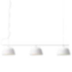 Design: TAF Architects. Ambit har en enkel ren form med en tidslös design. För att lampan ska få en svävande känsla hänger den i tunna vajrar och kablarna är gömda i röret där dom tre skärmarna fäster på. En lampa som är perfekt för stora matbord.