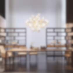 Familjen Crown är formgiven av den tyska designduon Jürgen Laub och Markus Jehs och finns i takkronor, golv- och vägglampor. Armaturerna har en modern form inspirerad av snökristallens kontur där ljuspunkterna är placerade i olika nivåer både på höjden och bredden. Med dom sandblästrade glaskuporna över ljuskällan får man ett behagligt bländfritt ljus som är dimmbar beroende på val av ljuskälla.