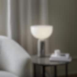 Den bästsäljande Kizu bordslampan får en lugn och jordnära känsla i en varmgrå marmorvariation. Den skimrande ytan på Gris du Marais blir en kontrast mot den rena vita övre delen av lampan, medan de ljusa strimmorna i stenens naturliga mönster binder samman elementen. Lampan består av två motsatta geometriska former i vitt akrylglas och grå marmor som skapar en harmoni mellan form och färg. Skärmen ser ut att balansera på foten vilket ger den ett intressant skulpturalt uttryck.