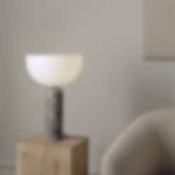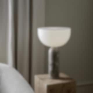 Den bästsäljande Kizu bordslampan får en lugn och jordnära känsla i en varmgrå marmorvariation. Den skimrande ytan på Gris du Marais blir en kontrast mot den rena vita övre delen av lampan, medan de ljusa strimmorna i stenens naturliga mönster binder samman elementen. Lampan består av två motsatta geometriska former i vitt akrylglas och grå marmor som skapar en harmoni mellan form och färg. Skärmen ser ut att balansera på foten vilket ger den ett intressant skulpturalt uttryck.