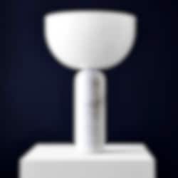 Kizu Large bordslampa består av två djärva skulpturala former och visar en viktlös balansgång. Illusionen av gravitation skapar en spänning inom verket, medan dess böjda former initierar en lugnande effekt. Denna kysspunkt av material och funktion skapar ett objekt i perfekt harmoni. Den vita akrylskärmen släpper ifrån sig ett milt, behagligt sken som inte bländar, vilket ger lampan ett imponerande och på samma gång lugnande intryck. Kizu är ett tjusigt blickfång i sovrummet, vardagsrummet eller någon annanstans i hemmet.
