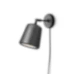 New Works serie Material hyllar den enkla formen. Tack vare de många materialvalen är det ändå en lampa som kan finna sin plats i många hem. Vägglampans huvud är ställbart. I serien finns även tak- och bordslampor.