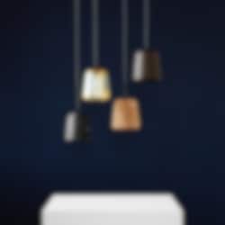 New Works serie Material hyllar den enkla formen. Tack vare de många materialvalen är det ändå en lampa som kan finna sin plats i många hem. I serien finns även vägg- och bordslampor.