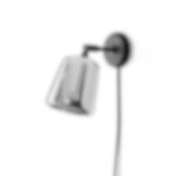 Enkla former är receptet i New Works serie Material. Enkelheten gör att materialen står i fokus och att lampan passar in i de flesta hemmen. Skärmen är ställbar och det går att komplettera med taklampa och bordslampa från samma serie.