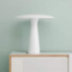 Shelter är en enkel, karaktäristisk lampa som ger ett fint mysigt ljus. Den vita inre sidan av skärmen ger en reflekterande effekt medan den breda, böjda formen riktar ljuset, vilket gör att den inte bländas. Den är fin i fönstret eller bredvid soffan men passar även utmärkt som läslampa vid sängen eller på skrivbordet..
