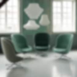 Konturerna av en ljuskronor har gett inspiration till lampornas dramatiska silhuetter. Den är gjord genom att spruta smala trådar av flam-skyddat resin på en stålram, som en silkesmask gör sin kokong.