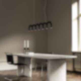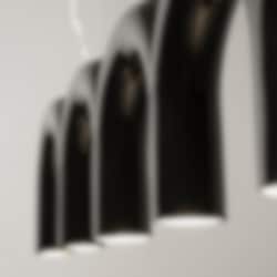 Serien omfattar flera modeller tillverkade i robust stål och utrustade med GU10-downlights för riktat ljus. De justerbara upphängningsdetaljerna gör det möjligt att anpassa varje armatur efter rummets förutsättningar.