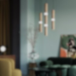 Design: Färg & Blanche. LightBone, designad av Fredrik Färg & Emma Blanche, är en perfekt förening av arkitektonisk design och teknisk precision. Namnet Bone syftar på den specifika länken där det sfäriska opalglaset "Light" sammanfogar de massiva ekdelarna, vilket skapar en harmonisk balans mellan material och form.