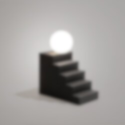 STAIR är en unik och skulptural lampa inspirerad av den grundläggande geometrin hos ett massivt trappblock. Den sfäriska ljuskällan vilar på kanten av tiden och skapar en känsla av rörelse och balans – som en ögonblicksbild av en pågående händelse. När lampan är tänd uppstår ett fängslande skuggspel, vilket förstärker dess mystik och närvaro i rummet.
