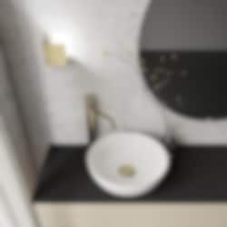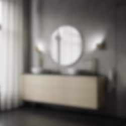 Sun är utformad med en dold ljuskälla som sprider ett mjukt indirekt ljus. Inspirationen kommer från solens upp och nedgång medans ambitionen har varit att nyttja former som ofta återkommer i badrummet, som till exempel kantigt kakel och runda speglar.