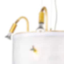 Jonas Bohlin, som ligger bakom Örsjös berömda Star-serie, har tagit sin design till nya lekfulla nivåer med lampan Cirkus med flugor. Stommen är i naturoxiderad mässing med skärm i offwhite xorel textil. Den har tre spottar som du kan rikta samt fyra ljuskällor för allmänljus.