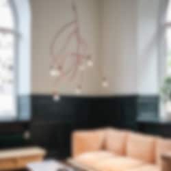 Ranka 7 taklampa röd är formgiven av Jonas Bohlin och en hyllning till naturens estetik och har därför en organisk och rund form. Namnet Ranka kommer från det svenska ordet vinranka, vilket utgör inspirationen till denna eleganta design. Taklampan finns i två storlekar med antingen fem eller sju ljuskällor, vilket gör den perfekt för att hänga över matbord eller mötesbord. Denna modell kommer med sju armar. Lampan kommer med en 250 cm lång textilladd och finns att välja i flera olika färger.