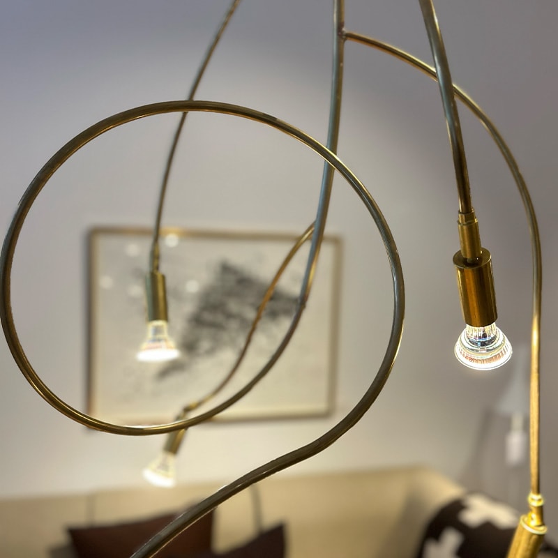 Design: Jonas Bohlin.Taklampan Ranka är en vidareutvecklad mindre version av den gigantiska ljuskrona som Örsjö installerat på restaurang Aira. Ranka slingrar sig likt en vinranka med sin organiska och mjuka form och är ett resultat av Jonas Bohlins design och Örsjös material och avancerade hantverkskunnande.