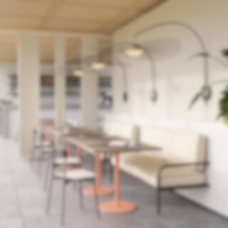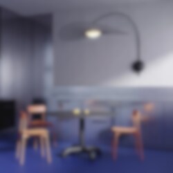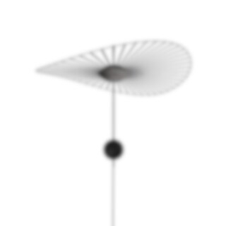 Lampan är en svävande, eterisk och grafisk lampa. Den anpassar sig till både små och stora utrymmen utan att blockera utsikten. Tillverkad i glasfiber som gör lampan väldigt lätt och följer luftens mjuka rörelser som den omges av.