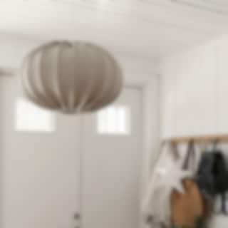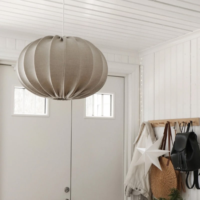 Takskärmen Hilma i lin natur ger rummet ett mjukt och harmoniskt uttryck. Den är klädd i ett vackert linnetyg med naturlig struktur som sprider ljuset behagligt. Finns i flera storlekar och takupphäng säljes separat.