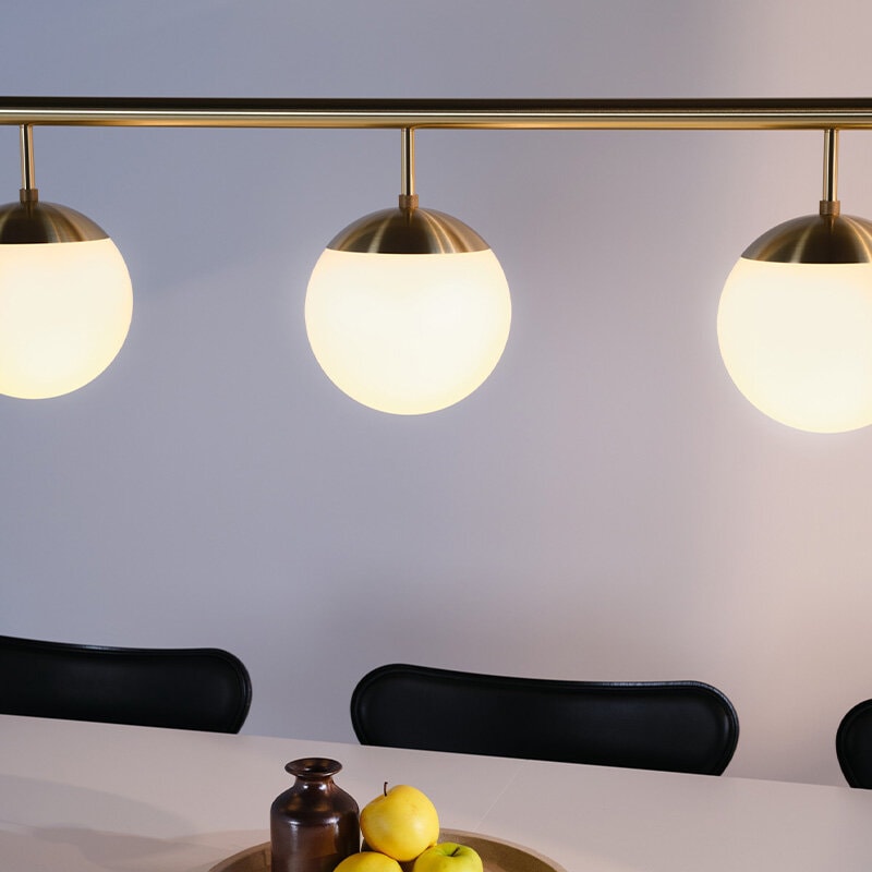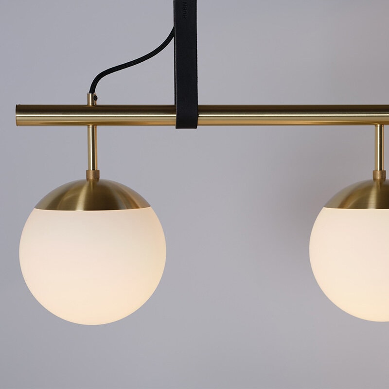 Design: Niclas Hoflin, 2018. Long Lord Pendant kombinerar skandinavisk elegans med funktionell design. De vackra glasgloberna hänger från en spunnen metallkåpa och vilar på en robust metallstång, vilket ger lampan en distinkt och modern karaktär.