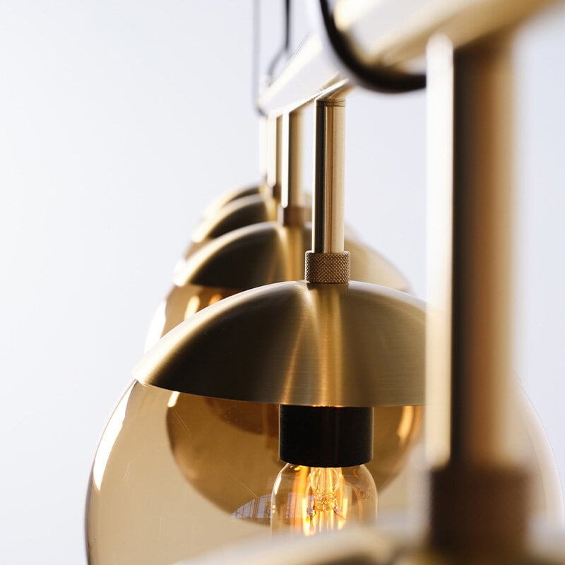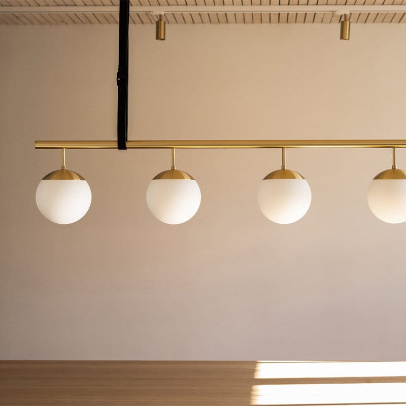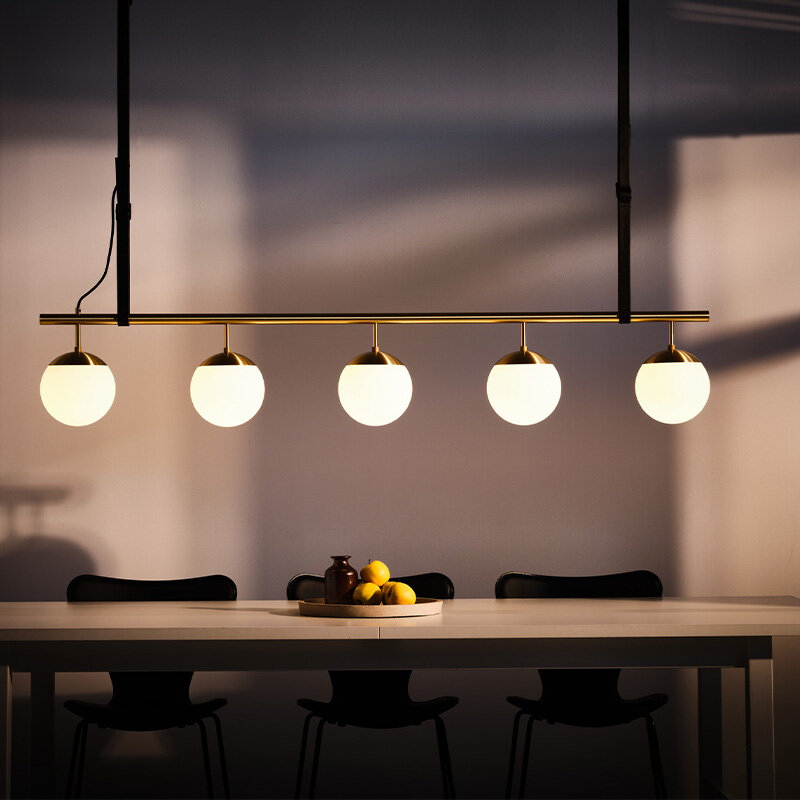 Design: Niclas Hoflin, 2018. Long Lord Pendant kombinerar skandinavisk elegans med funktionell design. De vackra glasgloberna hänger från en spunnen metallkåpa och vilar på en robust metallstång, vilket ger lampan en distinkt och modern karaktär.