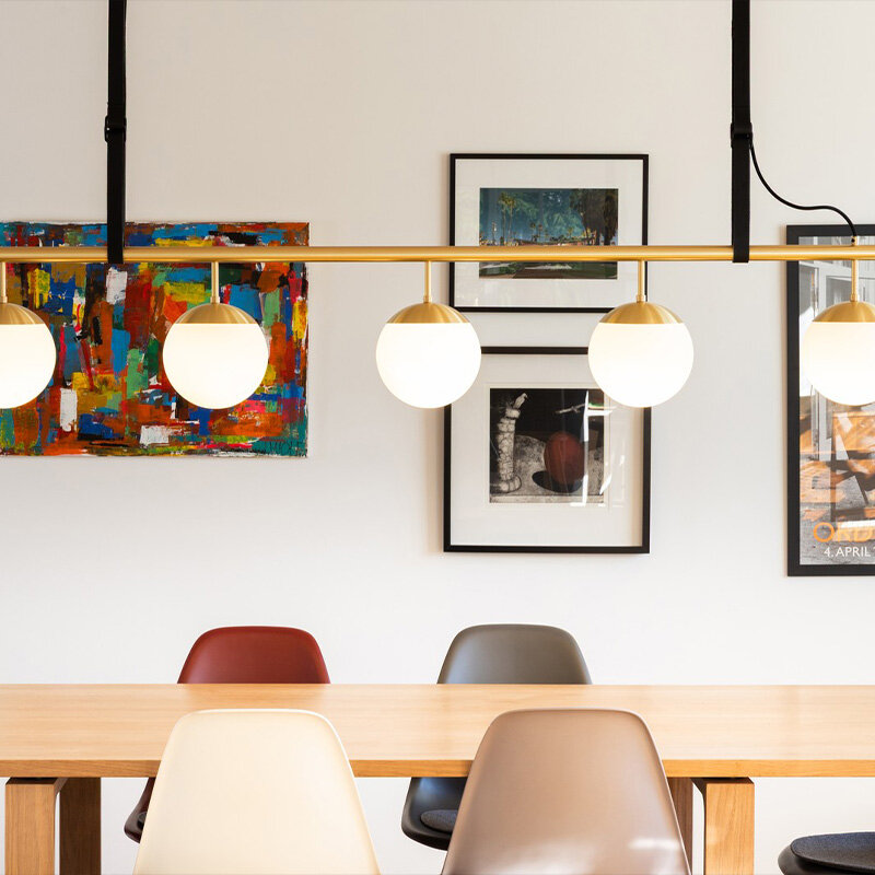 De justerbara läderremmarna, tillverkade i Sverige, tillför både flexibilitet och ett exklusivt hantverksmässigt inslag – en balans mellan funktion och estetik som gör Long Lord Pendant till en tidlös belysningslösning.