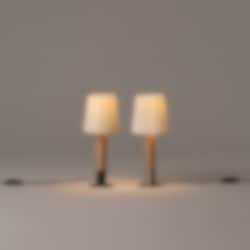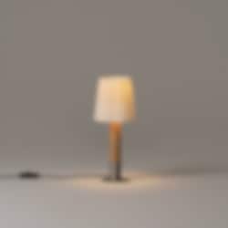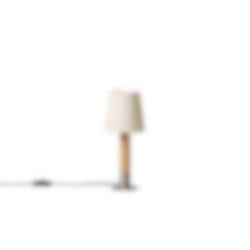 Lampans bas är tillverkad av högkvalitativa naturmaterial, som trä och metall, vilket ger den en subtil och organisk känsla. Den kompletteras av en avtagbar skärm i textil som mjukar upp ljuset för en behaglig och inbjudande atmosfär. Trots sin kompakta storlek utstrålar Básica Mínima karaktär och stil, vilket gör den idealisk för små utrymmen som nattduksbord, hyllor eller sidobord.