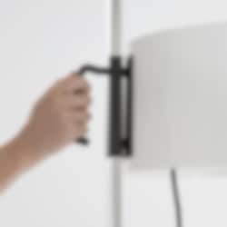 Lampan kännetecknas av sin unika justerbara skärm, som enkelt kan höjas eller sänkas med ett subtilt drag tack vare ett smart glidsystem. Den vita metakrylatskärmen sprider ett mjukt, behagligt ljus och sitter på en robust metallstruktur, vilket gör TMC till en praktisk och estetiskt tilltalande lösning för alla interiörer.