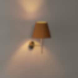Lampan har en textilskärm som sprider ett mjukt, varmt ljus och skapar en behaglig atmosfär. Den metalliska strukturen kombinerar hållbarhet med en tidlös estetik. Dess minimalistiska form gör att den smälter in i olika inredningsstilar, från modern till klassisk.