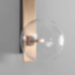 Lampan har en minimalistisk modern design som passar utmärkt i hemmets alla rum. Den är gjord i solid mässing och har en munblåsta klara glasglober.