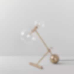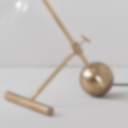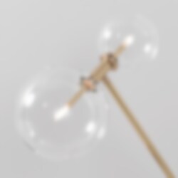 Lampan har en minimalistisk modern design som passar utmärkt i hemest alla rum. Den är gjord i solid mässing och har två munblåsta glasglober som som sitter längst ut på var sin sida om armen.