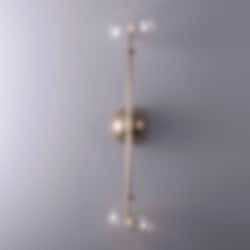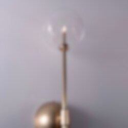 Lampan har en minimalistisk modern design som passar utmärkt i hemest alla rum. Den är gjord i solid mässing och har två munblåsta klara glasglober.