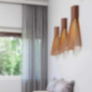 Lampan är ett fantastiskt hantverk av formpressad björk från dom finska skogarna. Trät ger ett mjukt varmt intryck till den annars rena enkla designen. En lättplacerad vägglampa som är fin vid soffan, sängen, i hallen eller trappen.