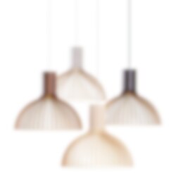 Secto Design grundades 1995 och var från början ett möbelföretag. Nu tillverkar de lampor av finsk formpressad björk designade av arkitekten Seppo Koho. All tillverkning sker i Finland och handarbetet utförs av skickliga finländska finsnickare. Lampornas rena linjer är typiskt skandinaviska och träet tillför en varm och harmonisk känsla i hemmet.