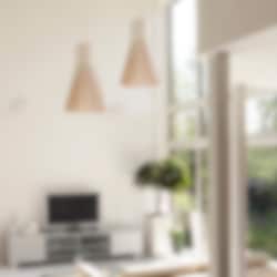 Lampan är ett fantastiskt hantverk av formpressad björk från dom finska skogarna. Trät ger ett mjukt varmt intryck till den annars rena enkla designen.