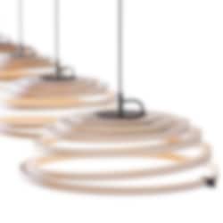 Lampan är ett fantastiskt hantverk av formpressad björk från dom finska skogarna. Trät ger ett mjukt varmt intryck till den annars rena enkla designen. Lekfull design med spiralform.
