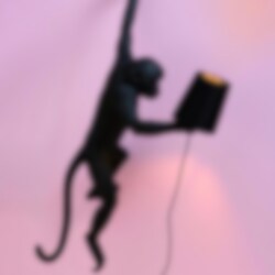 Design: Marcantonio Raimondi Malerba.The Monkey Lamp är en fantasifull och rolig vägglampa från italienska Seletti, ett möte mellan människa och natur. Inspirerad av barndomens lekar har den italienske formgivaren Malerba skapat en serie aplampor för bord, golv och vägg. Denna versionen ska fästas på vägg är svart är godkänd för utomhusbruk och badrum.