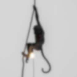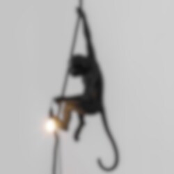 Design: Marcantonio Raimondi Malerba.The Monkey Lamp är en fantasifull och rolig taklampa från italienska Seletti, ett möte mellan människa och natur. Inspirerad av barndomens lekar har den italienske formgivaren Malerba skapat en serie aplampor för bord, golv och vägg. Alla i fantasifulla positioner hållande en ljuskälla. Denna version i svart är avsedd att fästa i taket och godkänd för utomhus och badrum. Glödlampa (LED) med ett behagligt, varmt sken samt takfäste medföljer.