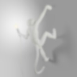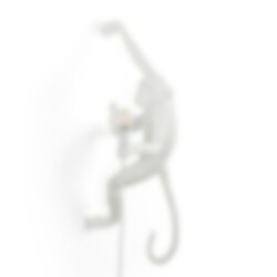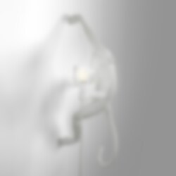The Monkey Lamp är en fantasifull och rolig vägglampa från italienska Seletti, ett möte mellan människa och natur. Inspirerad av barndomens lekar har den italienske formgivaren Malerba skapat en serie aplampor för bord, tak och vägg.  Alla i fantasifulla positioner hållande en ljuskälla. Denna version är avsedd att fästa på väggen, men med en vanlig väggkontakt. Glödlampa, LED, med ett behagligt varmt sken och fäste medföljer.
