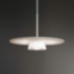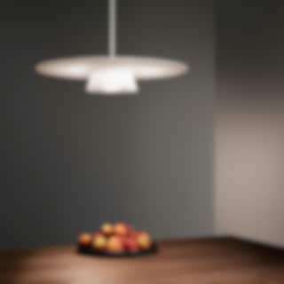 Sum takpendel har en tidlös och minimalistisk design som kan användas i olika inredningsstilar. Den har en svävande aluminiumskiva på 50 cm och en vit mindre skärm som omger ljuskällan. Sladd och takkopp har samma färg som skärmen. Det avger både riktat ljus nedåt och ett allmänljus, vilket är idealiskt över både arbetsbordet och matbordet eller soffbordet.
