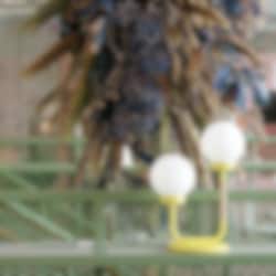 | Material | Opal glasglob, pulverlackerat stål, läder |