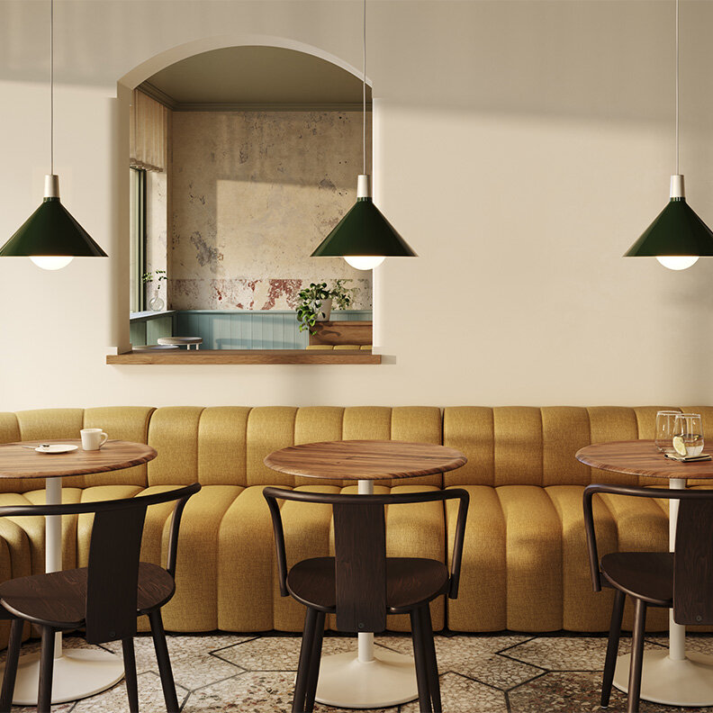 Bower Medium har en klassisk coolie-form som skapar ett djärvt och iögonfallande uttryck, samtidigt som ljuset sprids jämnt över ytan nedanför. Lampan levereras förinstallerad med en Sphere IV-ljuskälla, vilket ger en komplett och elegant ljuslösning direkt ur förpackningen.