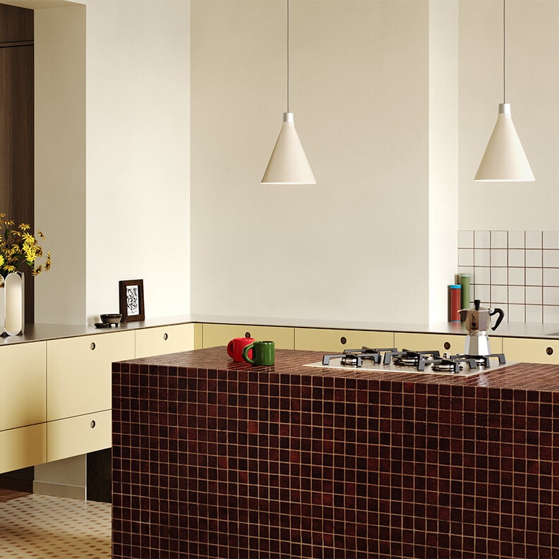 Bower Small är en del av Talas debutserie Bower, som kombinerar handspunna stålskärmar från Yorkshire, UK med eleganta anodiserade aluminiumpendlar. Den modulära designen finns i flera färger och storlekar, vilket ger många kreativa displaymöjligheter.