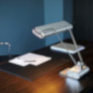 AD 34 är en fransk Art Deco-design från 1934. Designen är pampigt lyxig och gör sig allra bäst på det stora skrivbordet. Medan formen helt har behållits har ytbehandlingen och funktionen uppdaterats. Lampan består av klarlackerad aluminiumplåt medan sidorna och ramen är kromad. Skärmen går att rotera och länkningen mellan skärm och bas går att justera. Snygg strömbrytare på basen.