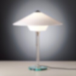 WG 28 Wagenfeld Bordslampa glas, nickel, vit