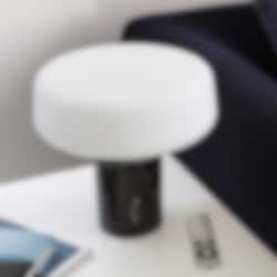 Solid bordslampa i vackert stilren design, och som passar perfekt in i alla hem, oavsett stilart. Den har en cylindrisk bas, framställd av fint polerad Nero Marquina marmor. Det handblåsta opalglaset sörjer för ett underbart jämnt fördelat ljus, och den är utrustad med en integrerad dimmer i stål, på den cylindriska bas, och skärmen är matterat handblåst opalglas. Marmor är naturmaterial därför kan varianterna variera en aning, vilket gör varje lampa unik.