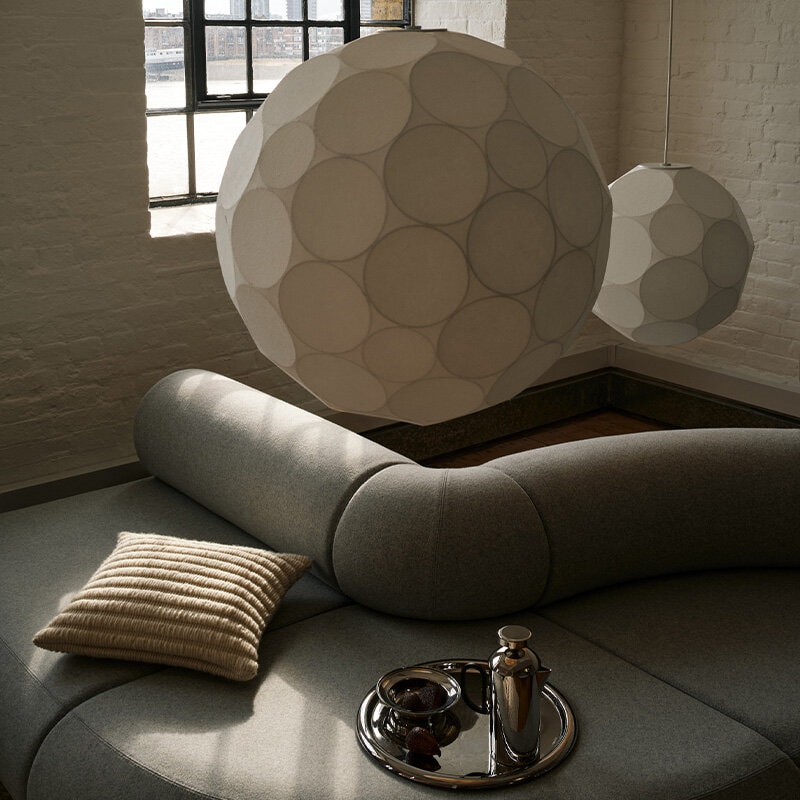 - Beat: Beat-serien, inspirerad av traditionella indiska vattenkärl, är tillverkad i handslagen mässing. Med sin mattsvarta utsida och mässingsfärgade insida sprider lampan ett varmt, rikt ljus och har blivit en modern klassiker i både privata och offentliga miljöer.