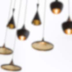- Beat: Beat-serien, inspirerad av traditionella indiska vattenkärl, är tillverkad i handslagen mässing. Med sin mattsvarta utsida och mässingsfärgade insida sprider lampan ett varmt, rikt ljus och har blivit en modern klassiker i både privata och offentliga miljöer.